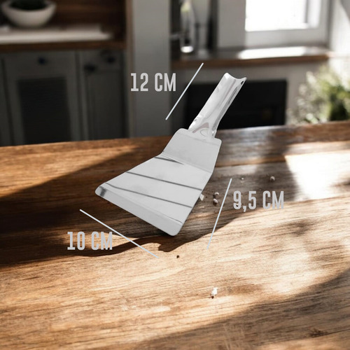 Ya sea que estés cocinando carnes, pescados, verduras o cualquier otro tipo de platillo, esta espátula de acero inoxidable es la herramienta que te ayudará a lograr resultados profesionales en tu cocina. ¡No te quedes sin la tuya y lleva la calidad y el estilo a tu cocina hoy mismo!
