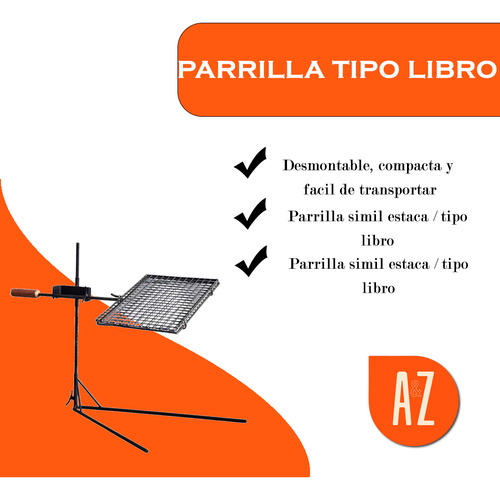 Parilla Estaca Asador Criollo Libro Regulable Y Desmontable