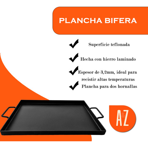 Plancha Cocina Bifera Lomitera Chapa Hierro Teflon 46×33 Negro